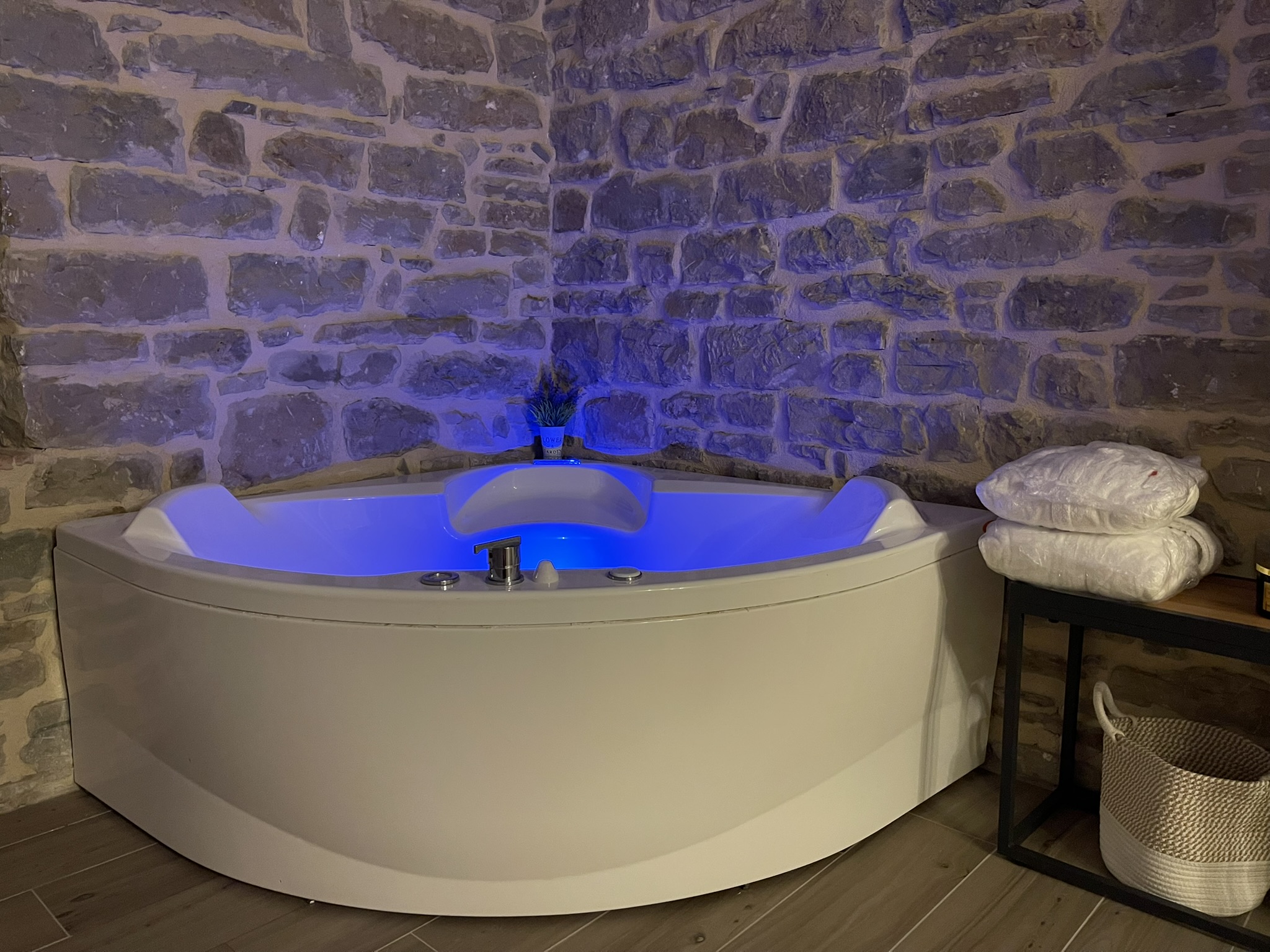 silenzio e intimità. Le camere della Locanda Vecchio Caseificio sono un rifugio romantico dove lasciarsi avvolgere dal calore della pietra e dall’abbraccio rilassante dell’idromassaggio.